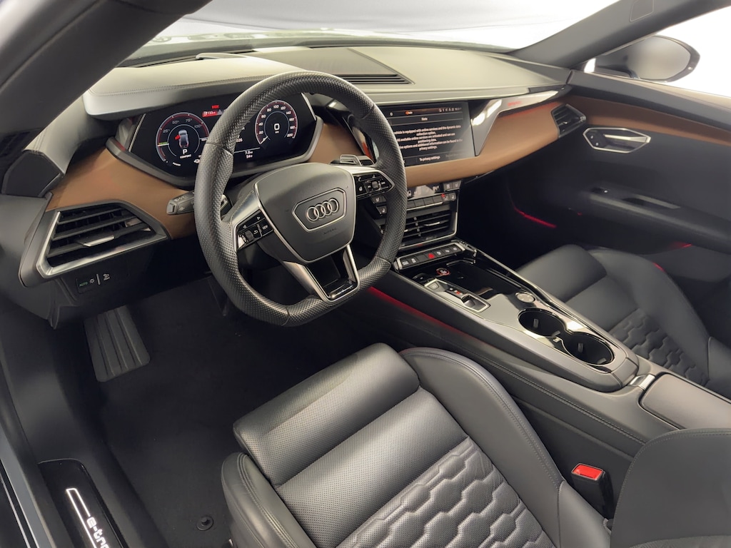 Technology is seamlessly integrated throughout the vehicle. Audi's advanced infotainment system and digital displays provide intuitive access to navigation, media, and vehicle settings, while the Audi virtual cockpit places key driving information clearly within view. These innovations create a connected and immersive driving experience that complements the vehicle's remarkable electric performance.